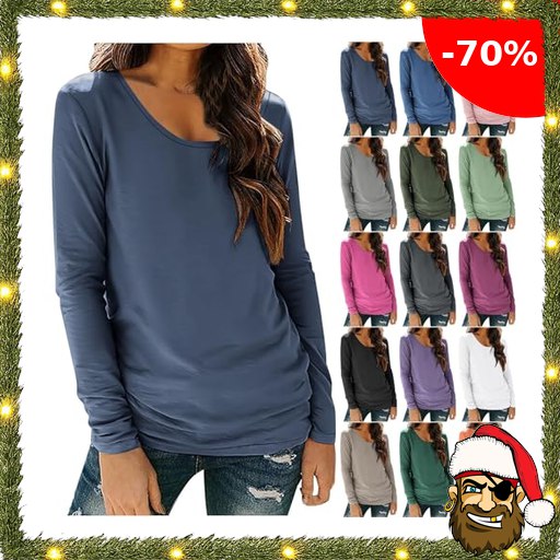 Tshirt Damen Basic Rundhals Langarmshirt Dünne Langarm Shirt Longsleeve Tee Top Elegant Einfarbig Pullover Pirate-Dea#ls Weiche Baumwolle Unterhemd Stretch Unterwäsche Locker Longshirt Teenager Mädchen Sportshirt