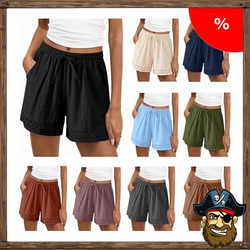Kurze Hose Damen Baumwolle Leinen Leinenhose Ausschnittmuster Shorts Musselin Hose Leicht Sommerhose Elegant Damen-Shorts Atmungsaktiv Leinen Shorts Bequeme Freizeithose Stoffhose Schwarz Pirate#-Deals S