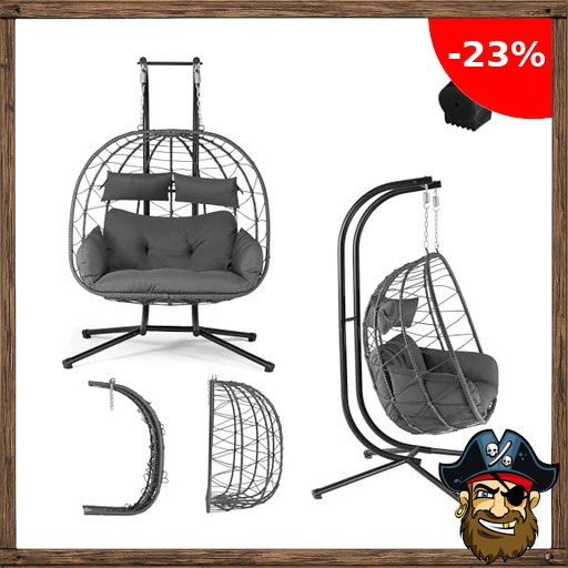 Juskys® Doppelhängesessel Aria – Polyrattan Hängesessel mit Gestell & Kissen – Pirate-!Deals Schaukel für Zwei Personen – Outdoor Indoor Sessel – XXL Korb Grau