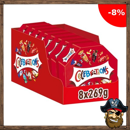 Celebrations Geschenkbox, Mini-Schokoriegel Mix, Twix, Snickers und mehr, Geschenk Schokolade Großpackung, 8er Pack (8 x ;Pirate-Deals 269g)