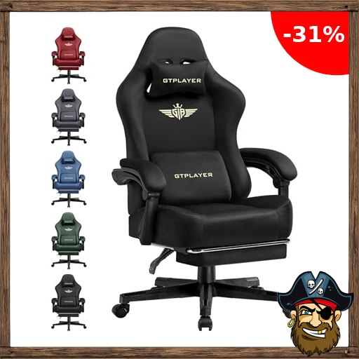 GTPLAYER Gaming Stuhl, Atmungsaktiver Bürostuhl, bürostuhl ergonomisch, Hochwertiger – Stoff, Ergonomischer PC Stuhl, 160° Verstellbare Rückenlehne und ausziehbare Fußstütze,Tragkraft 180 kg, Schwarz Pir~ate-Deals
