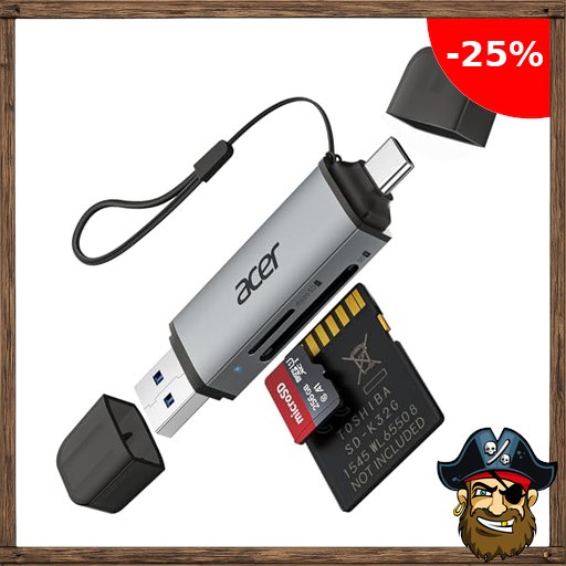acer SD Kartenleser, Dual USB 3.0 USB C Stecker Kartenlesegerät, Aluminium OTG Adapter SD Card Reader P:irate-Deals Speicherkartenleser für SD/Micro SD/TF/SDHC/SDXC, iPhone 17 16 15 Serie, Android/Windows/macOS.