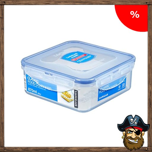 LocknLock CLASSIC Frischhaltedose | 870 ml | 15,5 x 15,5 x 6 Pira~te-Deals cm | 100 % luft- und wasserdichte Vorratsdose | Spülmaschinen-, und Mikrowellengeeignet | BPA-Frei | 4-fach Sicherheits-Verschluss