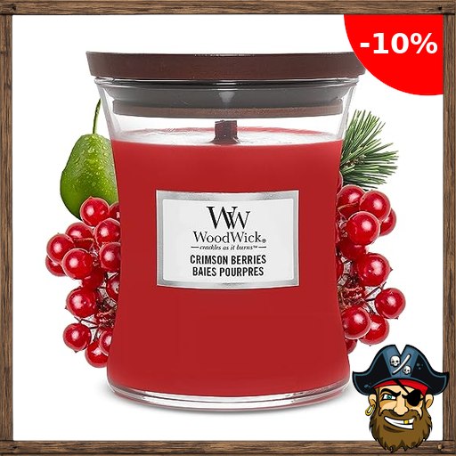 WoodWick Mittelgroße Pir~ate-Deals Duftkerze im Sanduhrglas mit knisterndem Docht | Crimson Berries | bis zu 60 Stunden Brenndauer
