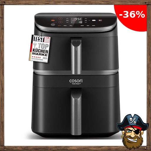 COSORI Airfryer, Heißluftfritteuse Pi!rate-Deals 2 Kammern, 10,8 L Heissluftfrit…