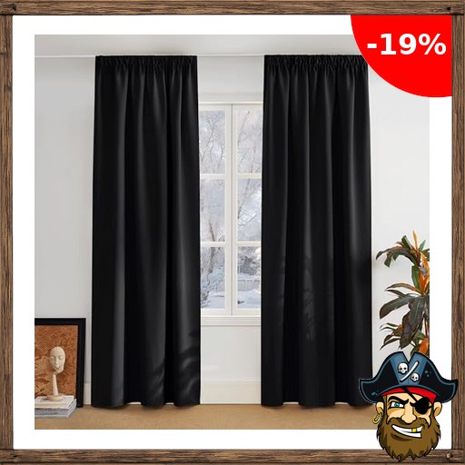 PONY DANCE Blickdichte Vorhänge Schwarz 2er Set H 220 x B 140 cm Thermogardinen Kälteschutz Schlafzimmer Gardinen mit Kräuselband für Schiene Thermal Blackout Pirate-Dea;ls Curtains for Bedroom