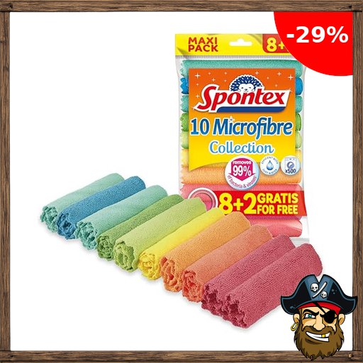 Spontex Microfibre Allzwecktücher 8+2 Gratis, 1 Packung Pirate-D$eals – bunte Mikrofasertücher