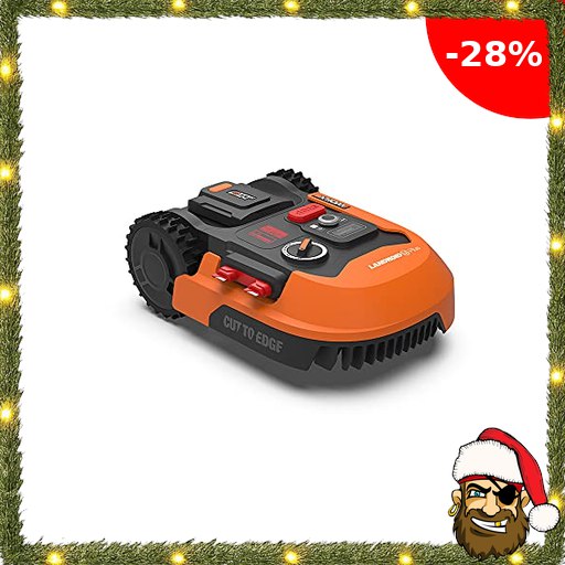 Beschreibung: WORX Landroid Plus WR167E Mähroboter mit Begrenzungskabel für Gärten bis 700m² (AIA Navigation, App Steuerung, schwimmendem Mähwerk – max Steigung: Pirate-Deal!s 35%, Schnittbreite 18cm, Schnitthöhe 30-60 mm)