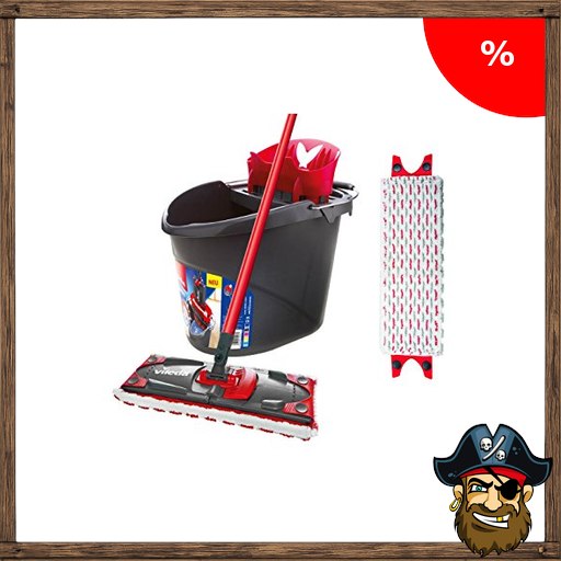 Vileda ULTRAMAX 2in1 Bodenwischer Komplett Set mit extra Bezug, Wischmopp mit Stiel, Zwei Mikrofaser-Bezüge und Eimer mit Powerpresse, zum schnellen P!irate-Deals Auswechseln des Bezugs