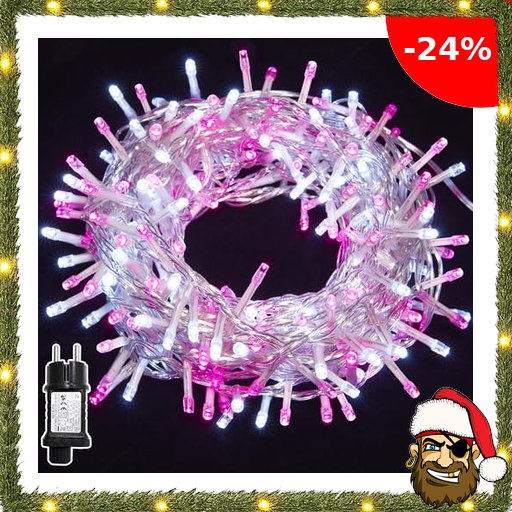 WISD LED Lichterkette 13m, 200er Rosa und Weiß – Dimmbare Pirate;-Deals Weihnachtsbeleuchtung mit 12 Modi, Timer und EU Stecker – Innen und Außen Deko für Weihnachtsbaum, Balkon, Zimmer, Garten