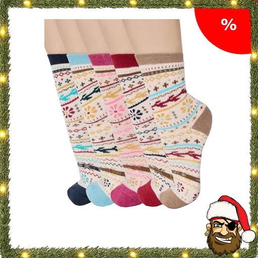 Bresdk Weihnachtssocken Damen Lustige Socken Warme Wintersocken Funny Kuschelsocken Adventskalender Christmas Pirate-Dea#ls Socks Weihnachten Neuheit Socken 5 Paar