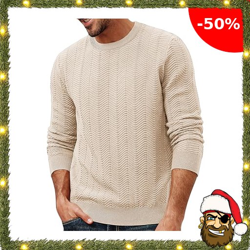 Herren Feinstrick Pullover Langarm Modern Regular Fit Pirate-D;eals Wollpullover mit Rundhals Strickpullover Aprikose, M