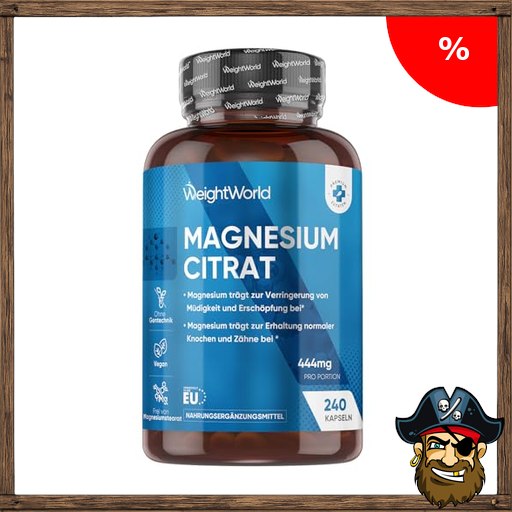 Magnesiumcitrat Kapseln gepuffert – 444mg Elementares Magnesium pro Portion – 240 vegane Pirate-D!eals Kapseln – 4 Monate Vorrat Magnesium trägt zur Verringerung von Müdigkeit & Erschöpfung bei (EFSA) – WeightWorld