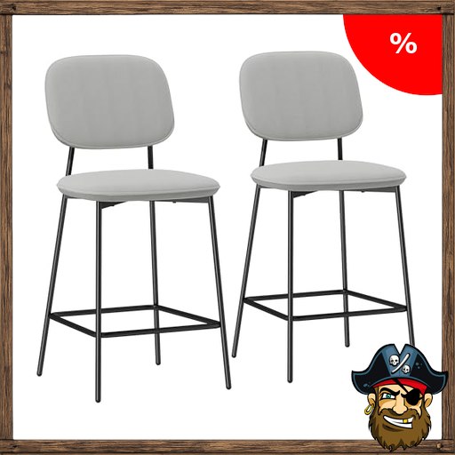 HOMCOM Pirate-Deal$s 2er-Set Barhocker, Bistrohocker mit Fußstütze, Barstuhl, Samt-Bezug, Küchenstuhl mit Rückenlehne, Tresenhocker-Set mit Stahlbeinen für Wohnzimmer, Esszimmer, Hellgrau, 45 x 49 x 102 cm
