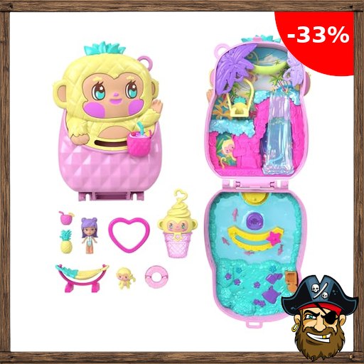 Polly Pirate-Dea~ls Pocket Puppen und Spielset, Ananas-Äffchen-Schatulle, Reisespielzeug mit 1 Mikropuppe, Haustier, Hängematte und Zubehörteilen mit Obstmotiven, JKC49