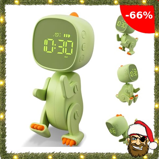 Pi:rate-Deals Ayybboo Digitaler Wecker Kinder Jungen,DREI Alarmes,Dinosaurier Wecker mit Variabler Form,Schlummer,Nachtlicht Timer,6 Weckmusik,Einstellbare Helligkeit und Lautstärke,Interne Batterie(Grün)