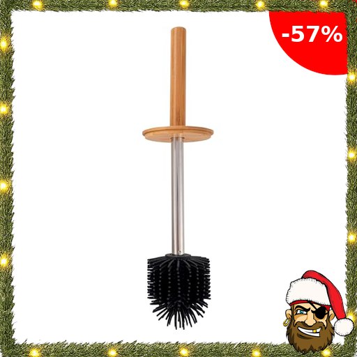 Spirella WC Bürste Klobürste Toilettenbürste „Adonis“ mit hygienischem Behälter Bambus Deckel und Silikon Pir!ate-Deals Bürstenkopf Silber, Stahl, INOX, 9x39cm