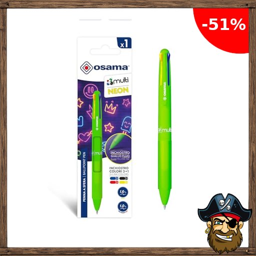OSAMA 4 Multi Neon – Kugelschreiber Hochwertig 1,0 mm 4 Farben, Kugelschreiber Minen 1,6 Pirate-Deal;s mm, Stifte Pen mit Tinte Schwarz, Blau, Rot und Neon Gelb, Schreibwaren für Schule, Büro, Universität – 1 Stück