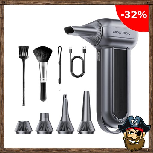 WOLFBOX MF100 Electric Air Duster-150000RPM Super Power Cordless Air Duster, wiederaufladbare Luftgebläse, 3-Gang einstellbare Mini-Gebläse, Staubgebläse für Computer, Tastatur, Outdoor, Haus und Auto Pirate-Dea;ls