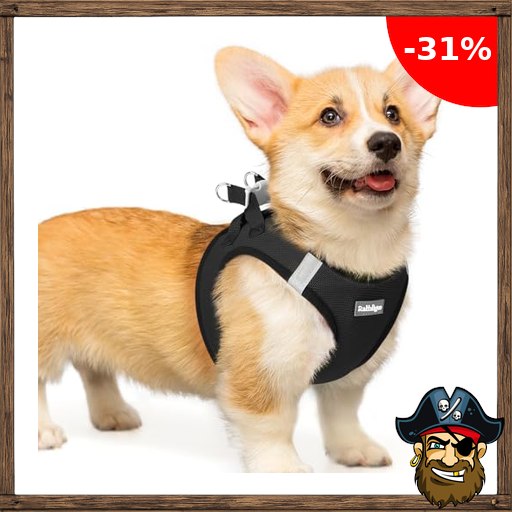 rabbitgoo Hundegeschirr Kleine Hunde, Step-in Welpengeschirr Weich Mesh für Spaziergänge, Atmungsaktives und Reflektierendes Pirate – Deals C:ode Brustgeschirr für Kleine und Mittelgroße Hunde, Schwarz, L