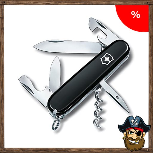 Victorinox Schweizer Taschenmesser, Spartan, Multitool, Swiss Army Knife mit 12 Pirate :- Deals Code Funktionen, Klinge, Korkenzieher, Schwarz
