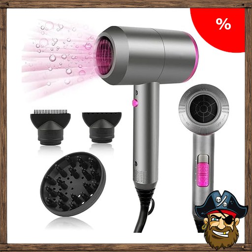 CASAMAA Ionen Föhn AC-Motor Haartrockner, Schnelltrocknen Hair Dryer, Profi Fön mit Kaltlufttaste, 3 Temperaturstufen, Pir~ate-Deals 2 Gebläsestufen, 3 Stylingdüsen & Diffusor