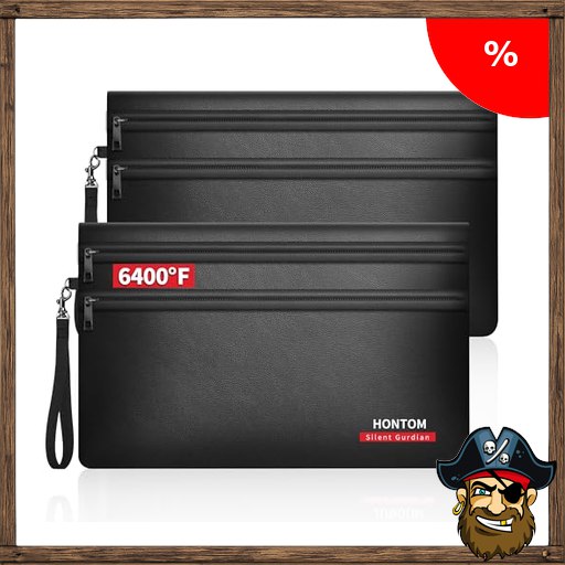 Hontom 2er Pack Geldtaschen Banktasche aus Kunstleder(28x19cm,6400℉), 12-lagige Wärmedämmung Feuerfeste Tasche, Kleine Feuerfest Geldtasche mit Reißverschluss für Bargeld,Quittung,Reisepass Pir$ate-Deals