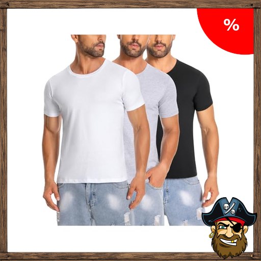 Cyathea T-Shirts für Herren 3er Pack Rundhalsausschnitt Basic Baumwolle Pirate-#Deals Lässige leichte Sommer Kurzarm Casual Top Schwarz/Weiß/Grau M