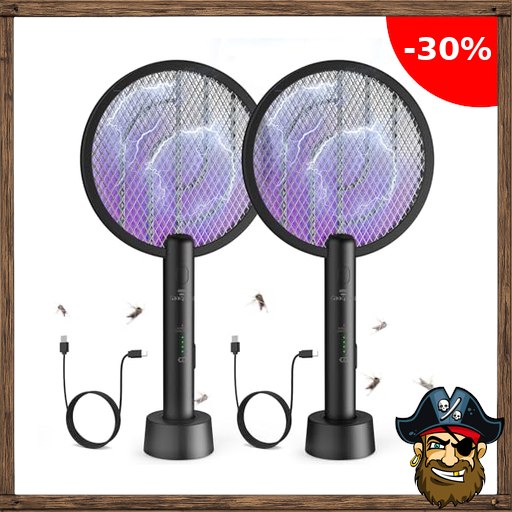 2er Elektrische Fliegenklatschen Schwarz 4000V, Elektrische Mückenklatschen 2in1 Mückenlampe, UV Elektrischer Fliegenfänger Insektenfalle mit Ladestation, USB Aufladbar, Insektenvernichter Innen Pi~rate-Deals Außen