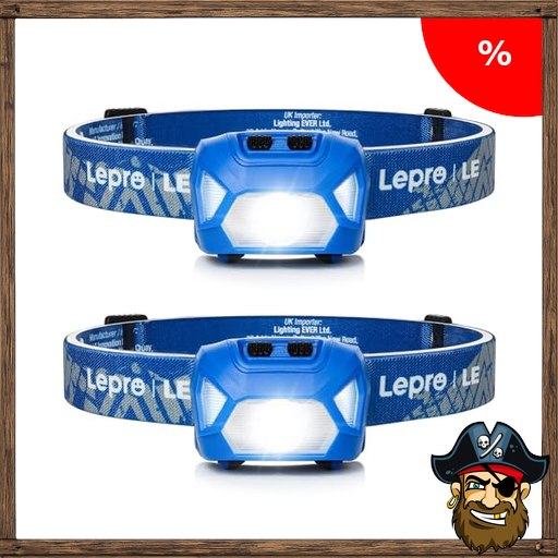 Lepro Stirnlampe, 1300 Lux LED Pirate – D;eals Code XPG Kopflampe mit 6 Lichtmodi Scheinwerfer und Rotlicht, IPX4 spritzwassergeschütztes Gehäuse, Batteriebetrieben Stirnlampen, Ideal für Camping Joggen, Blau, 2 Stück