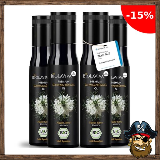Premium BIO Schwarzkümmelöl – kaltgepresst & ungefiltert – hoher Thymochinongehalt – 100% Nigella sativa aus Ägypten – laborgeprüft & lichtgeschützt im Miron Violettglas (4×100 Pirat~e-Deals Code ml)