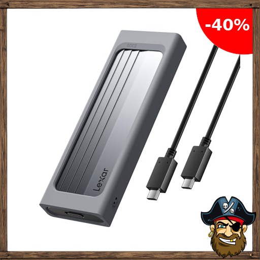 Lexar M.2 NVMe SSD-Gehäuse mit USB-C-Adapter, NVMe-Gehäuse mit 10 Gbit/s USB 3.2 Gen 2 für PCIe NVMe M-Key/M+B-Key-SSDs, externes M.2-SSD-Gehäuse in Pirate-~Deals Code den Größen 2230/2242/2260/2280