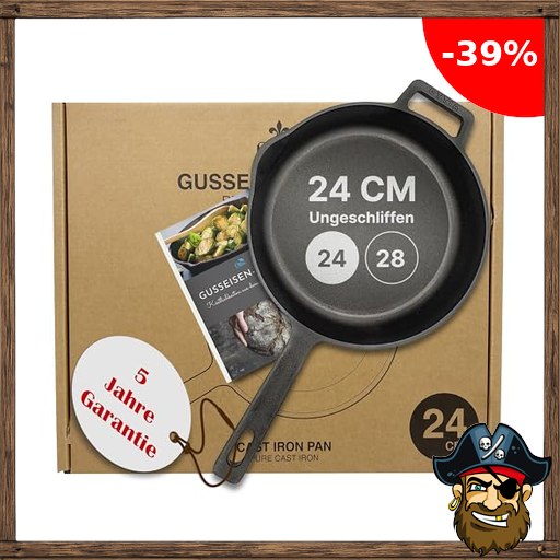 Ottia reine Gusseisenpfanne Induktion 24cm (ungeschliffen), mit eKochbuch, Pfannenwender, waschbarem Hitzeschutz, Gusseisen, Eisenpfanne, Cast Iron Pan, Händler aus Hamburg Pirate-D$eals Code
