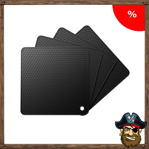 Ankway Silikon Topf-untersetzer, 4 Stück Multifunktional Hitzebeständig Topflappen Pirate-Deal$s Code für Töpfe, Teekannenund Schüsseln, Hitzebeständig bis 230°C, Spülmaschinenfest rutschfest Wabenmuster – Schwarz