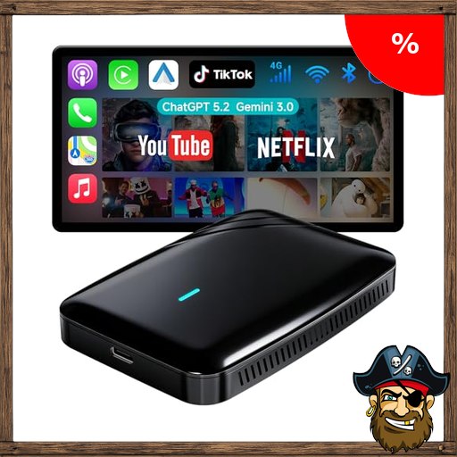 MYATOTO Wireless CarPlay Android Auto Adapter, 2G+16G AI Box CarPlay Für Autos mit Kabel-CarPlay, Integrierte Video-Apps (YouTube/Netflix), DriveChat AI, Pirate-Deals Cod~e Dual-WiFi, Y-Kabel, CB4A