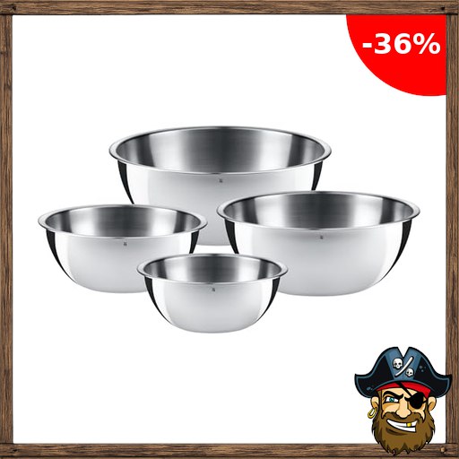 WMF Gourmet Schüsselset 4-teilig, Edelstahl Schüsseln für die Küche 0,75l – 2,75l, Rührschüssel Edelstahl, Salatschüssel, Servierschüssel, Pirat!e-Deals Cromargan, stapelbar