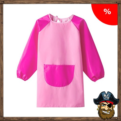 Greyoe 1 Stück Malschürze Kinder Malkittel Kinder Schürze Kinder Lätzchen mit ärmeln Wasserdicht und Pirate-Deal$s Schmutzabweisend zum Malen (Rosa, XL)