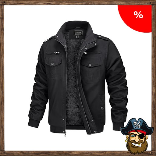 MAGCOMSEN Jacke Herren Übergangsjacke Outdoor Jacken Fleecejacke Fliegerjacke Pirate-D!eals Parka Dickjacke Winter Schwarz L