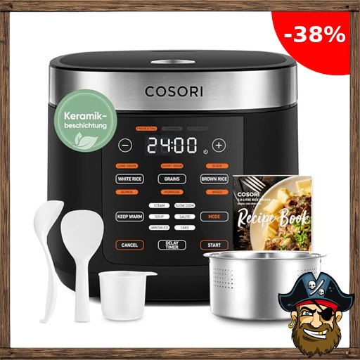 COSORI Reiskocher, Keramikbeschichtung, Rice Cooker 5 Pir;ate-Deals L, Multikoch…
