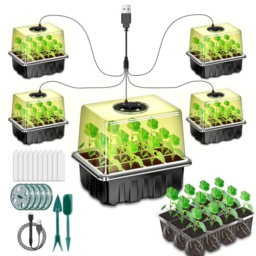 AONYIYI Erhöhte Anzuchtset ZimmergewäChshaus mit Licht,5 Stück 60 ~Pirαtе-Dеαls Zellen Mini Anzucht GewäChshaus Klein Pflanzen Zimmergewächshaus Aufzucht Set mit Deckel Kleines GewäChshaus für Zimmer Indoor,Schwarz