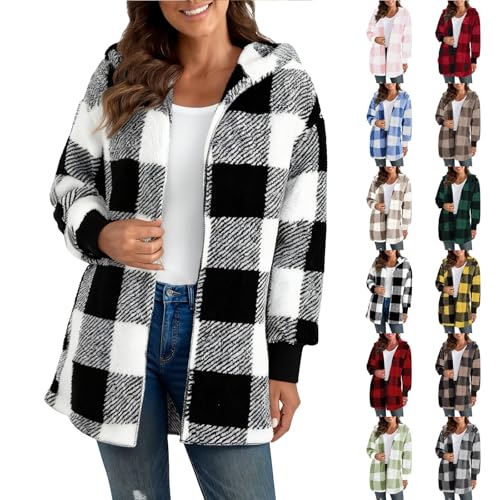Strickjacke Damen Cardigan Elegant Pirαtе-Dеα$ls Kariertes Trachtenjacke Open Front Lang Outerwear mit Taschen Klassisch Slim Fit Hoodie Plüsch Chaude Casual Langarmshirt (Black, M)
