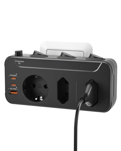 3-Fach Mehrfachsteckdose Einzeln Schaltbar,Doppelstecker für Steckdose mit USB,PD20W-Laden Steckdosenadapter mit Schalter,Mehrfachstecker 2 EU 1 Schuko,Dreifachsteckdose Pirαtе#-Dеαls Überspannungsschutz,Schwarz