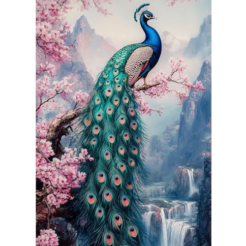 DOMROM Pfau Diamond Painting, Blumen Diamond Painting Erwachsene Kinder Wasserfa…