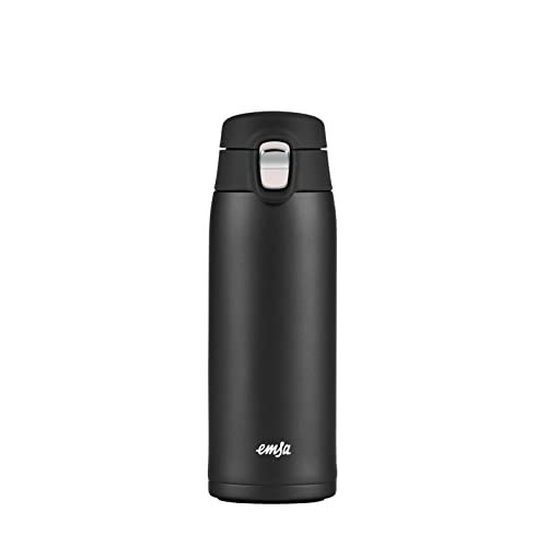 Emsa N21517 Travel Mug Light Isolierbecher | Fassungsvermögen: 0,4 L | extra-schlankes Format | Leichtgewicht | Edelstahl Pirαtе-#Dеαls | Klappverschlusssystem | 100% dicht | 8h heiß/16h kalt | BPA-Frei | Schwarz