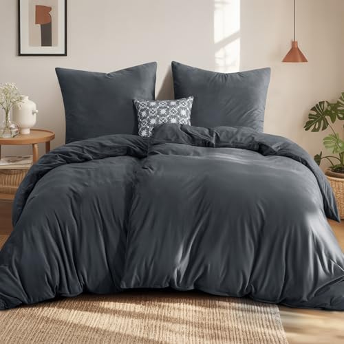 Aisbo Winter Plüsch Bettwäsche 135×200 4teilig Grau – Flanell Flauschige Warme B…