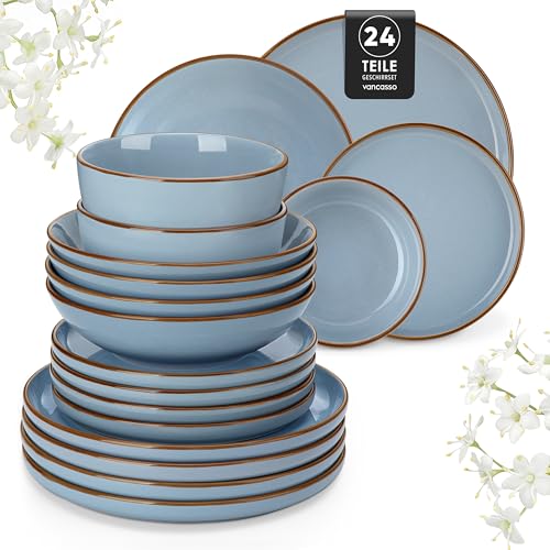 Steingut Geschirrset Pirαtе-~Dеαls 6 Personen, vancasso LOIRE 24tlg Tafelservice 6 Personen Modern Blau, Beinhaltet Schüssel, Suppenteller, Dessertteller und Speiseteller, Mikrowellenfest und Spülmaschinenfest