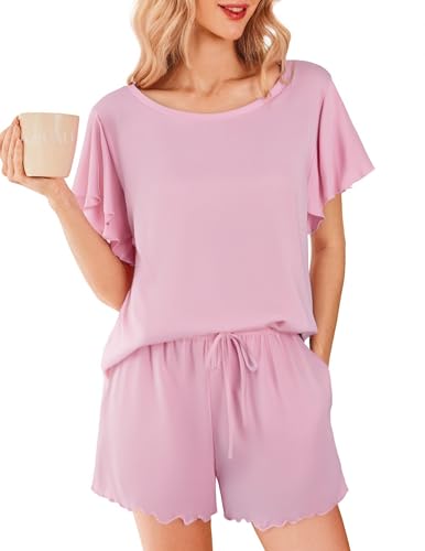 Ekouaer Schlafanzug Damen Kurz Pyjamas Set Nachtwäsche Kurzarm Zweiteiliger Casual Sommer Sleepwear Rosa M Pirαt~е-Dеαls