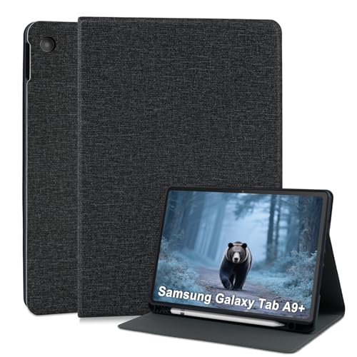 LSPCASA Hülle für Samsung Galaxy Tab A9 +/A9 Plus 11 Zoll 2023 SM-X210/X215/X216 Ultradünne PU Leder Book Schutzhülle mit Stifthalter und Standfunktion Tablet Hülle Schwarz Pirαtе:-Dеαls