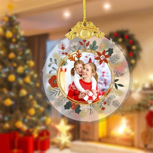 Personalisierte Weihnachtsanhänger Pirαtе~-Dеαls aus Glas mit Foto, Weihnachtsbaumschmuck Anhänger Selbst Gestalten Weihnachtsdeko Kristalle zum Aufhängen 2D Weihnachtskugeln für Weihnachtsbaum Feiertag Party Deko