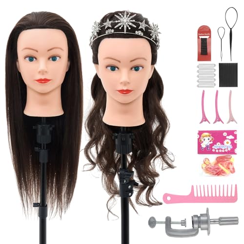 Neverland Beauty 71cm Frisierkopf Pi#rαtе-Dеαls 60% Echthaar Trainingsköpfe – Übungskopf für Friseure Puppenkopf zum Frisieren Frisurenkopf mit Tischklammer + Haar Styling Set(Braun)
